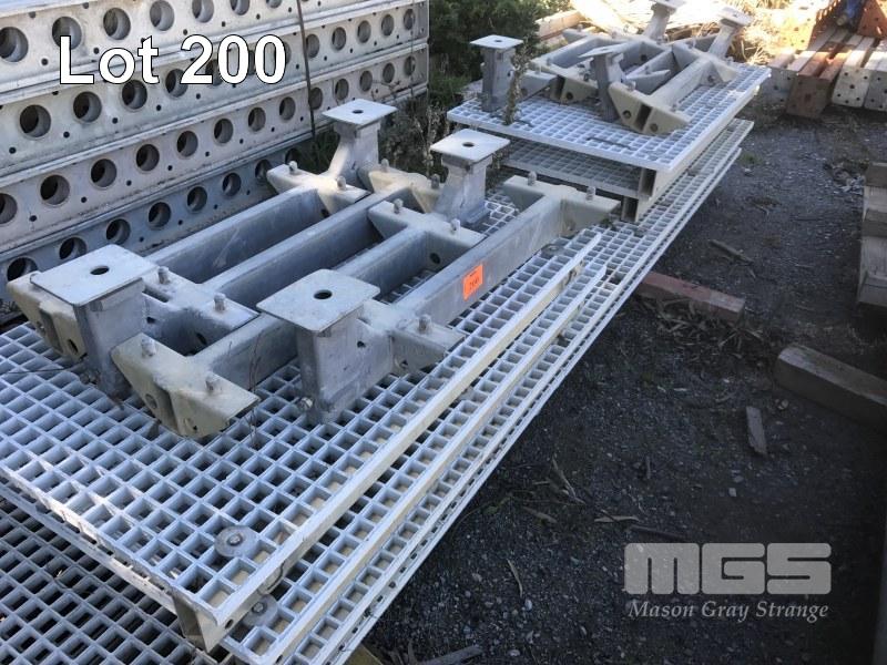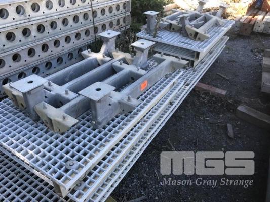 6 x SECTIONS WALKWAY PLASTIC GRID WITH ALLOY FRAMES, 2 x 4m LONG, 4 x 1.2m LONG, PLUS 6 x SUPPORTS