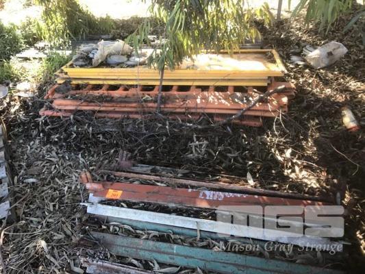 1 x PALLET STEEL ANGLE SECTIONS, 3 x SAFETY BARRIERS, 4 X ROAD SIGNS, (WORKMAN AREA), 2 x SHEETS CORRUGATED IRON