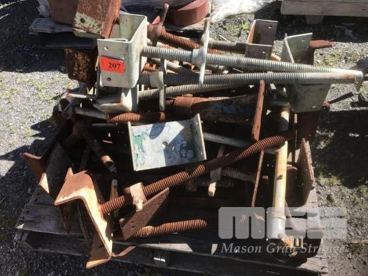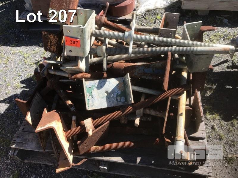 3 x STILLAGES & 1 x PALLET & CONTENTS ADJUSTABLE LEGS BASE PLATES, & VARIOUS RIO BAR BRACKETS & LENGTHS