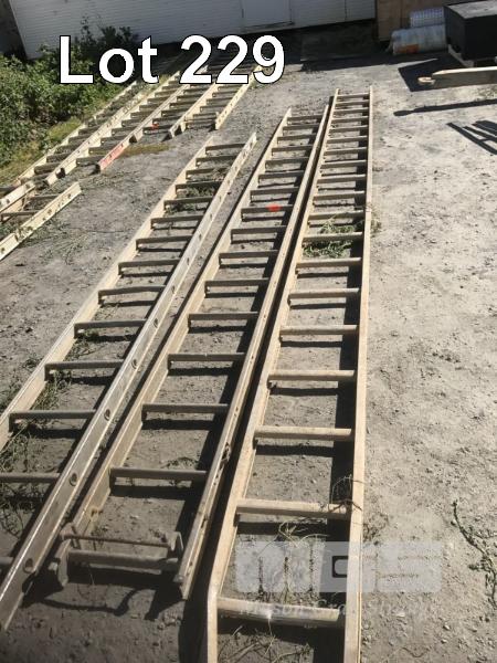 3 x ALUMINIUM EXTENSION LADDER SECTIONS, 1 x 5.95m 1 x 4.9m 1 x 4.5m ALL FAULTS