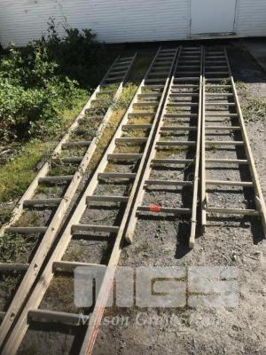 4 x ALUMINIUM EXTENSION LADDER SECTIONS, 2 x 4.7m 2 x 5.9m ALL FAULTS