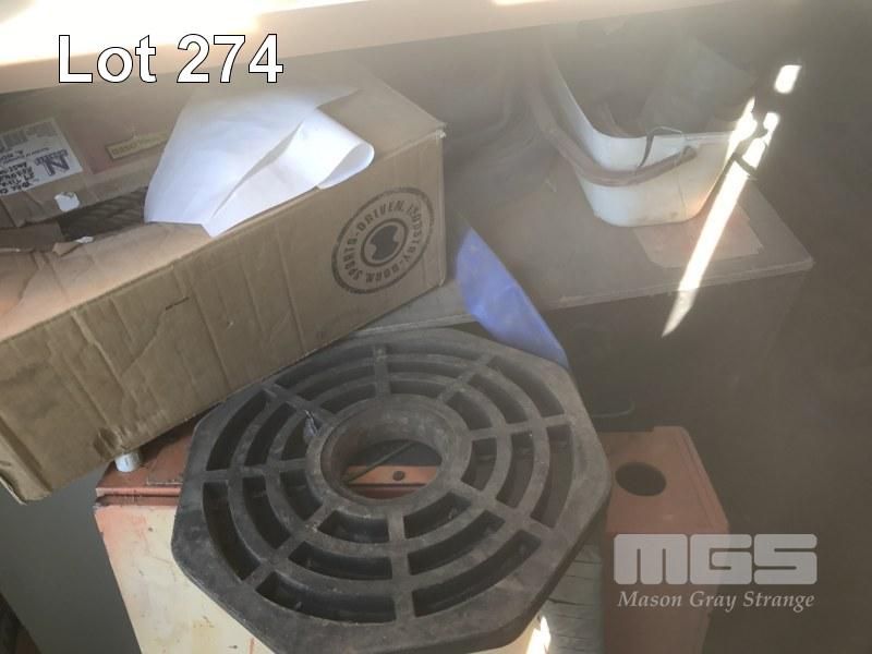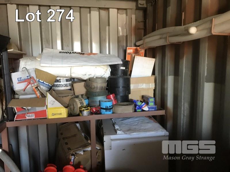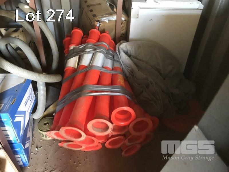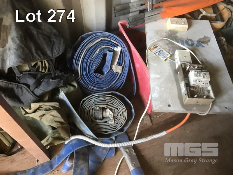 ELECTRICAL POWER BOXES, SHADE CLOTH, LIFTING CHAINS, BLACK PVC DRAIN PITS, ORANGE BOLLARDS, LAYFLAT HOSE, STRETCHER, SAFETY SIGNS, HI-VIS GEAR, CHEST FREEZER (CONTENTS OF CONTAINER)