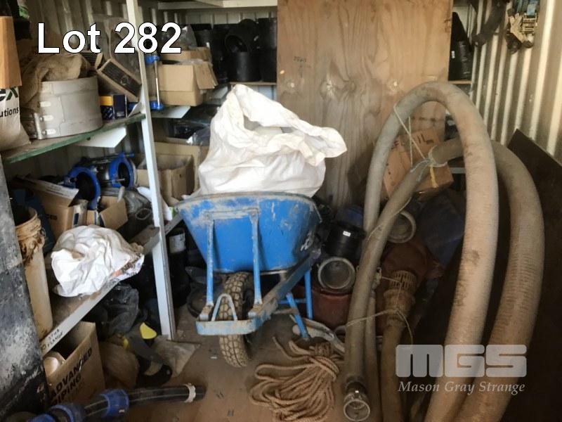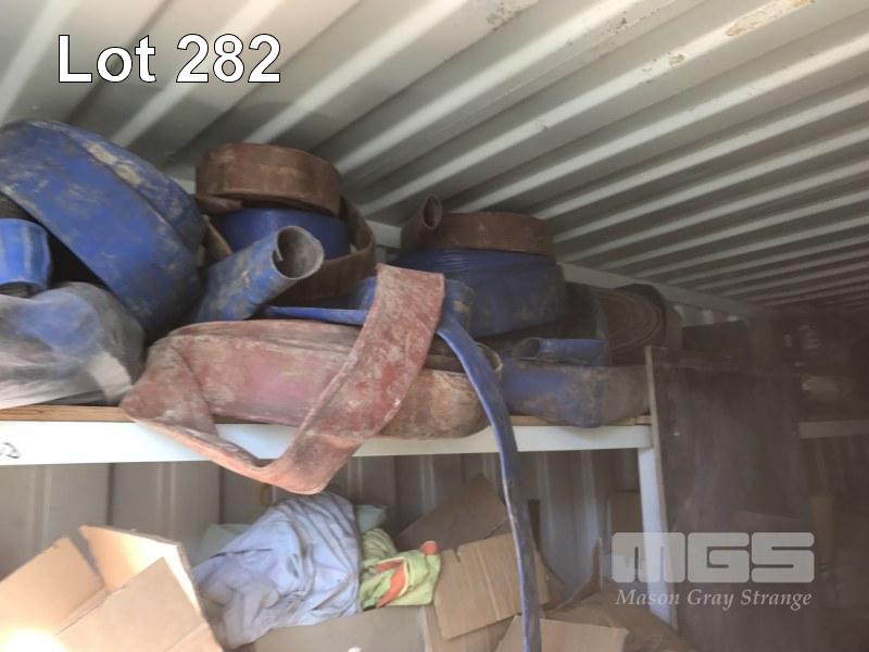 LAYFLAT HOSE, FUSION PIPE WELD FITTINGS, SUCTION HOSE, PRESSURE PIPE, AIR HOSE, CHAINS, TOOLS, WHEELBARROWS (CONTENTS OF CONTAINER)