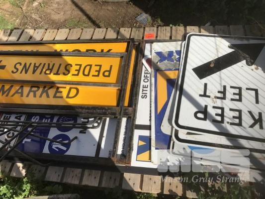 ASSORTED SIGNS, KEEP LEFT, GIVE WAY, WORKMAN, PEDESTRIAN, ETC, 1 x PALLET