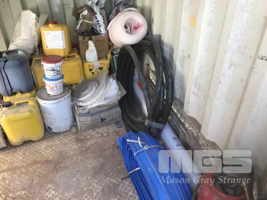 SIKA FILM, 11 x 10 LITRE, ROAD SIDE MAKER POSTS, CRETE BOND, HARDWARE, AIRLINE (CONTENTS OF CONTAINER)