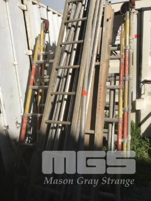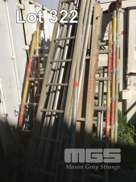 ALLOY SCAFFOLDING COMPONENTS, BASE SECTION, CENTRE SECTION, RAILS, 2 x PLATFORMS, 12 x BRACES & OUT RIGGER