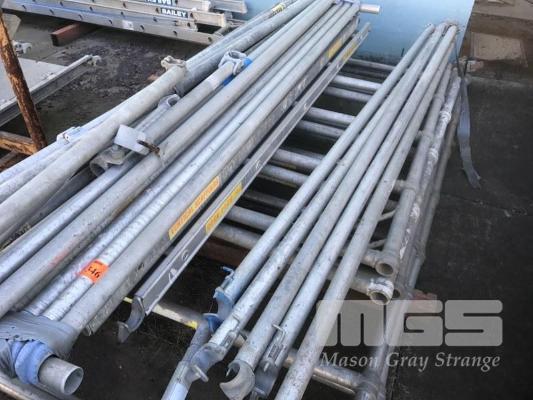 ALLOY SCAFFOLDING COMPONENTS, BASE SECTION, CENTRE SECTION, RAILS, 2 x PLATFORMS, 12 x BRACES & OUT RIGGER