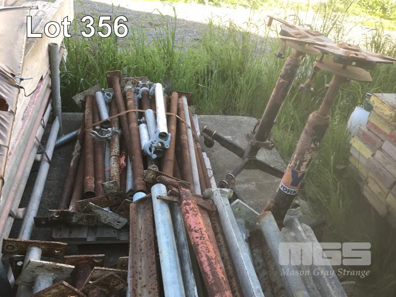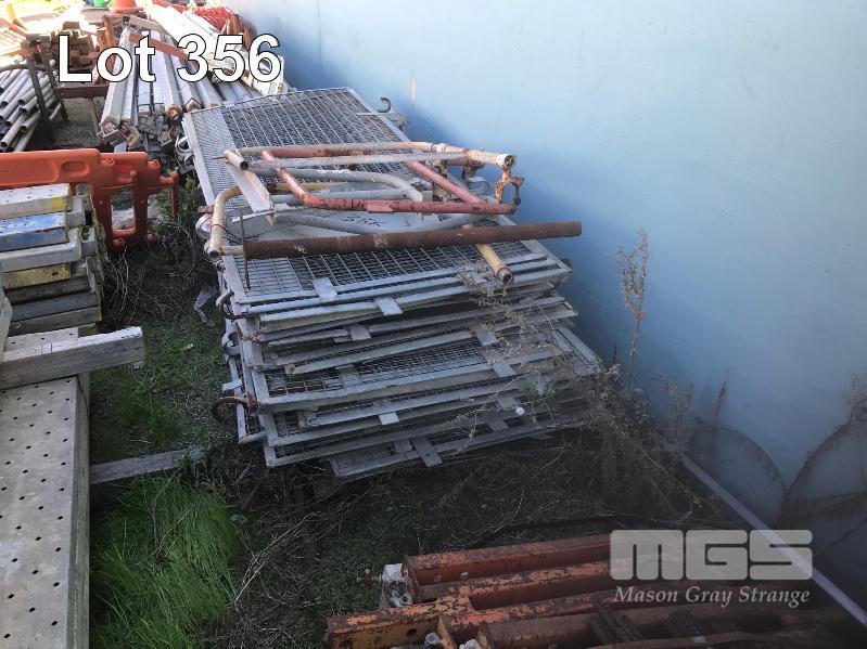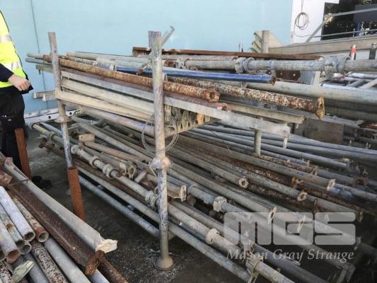 STEEL SCAFFOLD COMPONENTS, PLANKS & ADJUSTABLE BASE ON CONCRETE, 12 x ASSORTED STILLAGES/PALLETS
