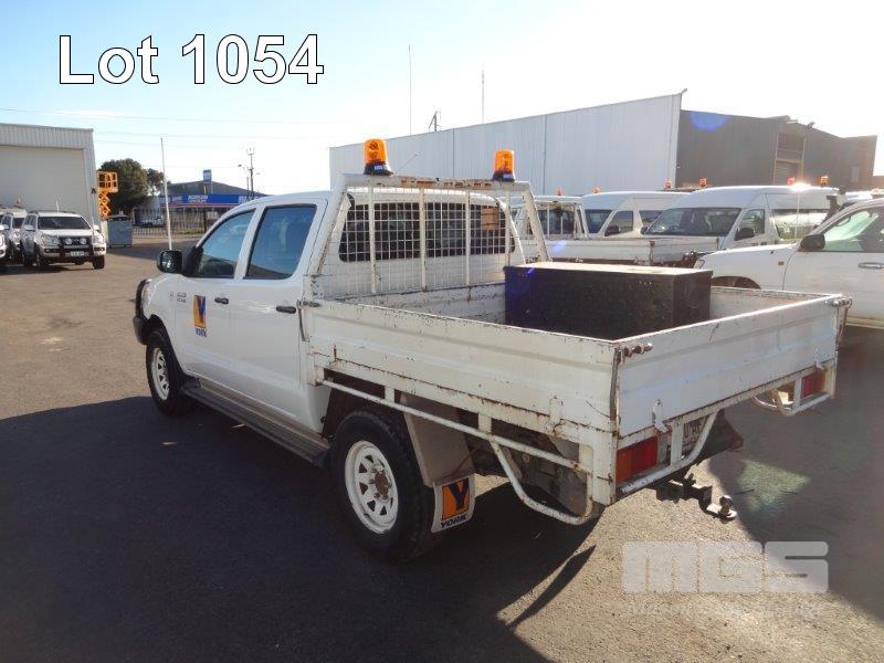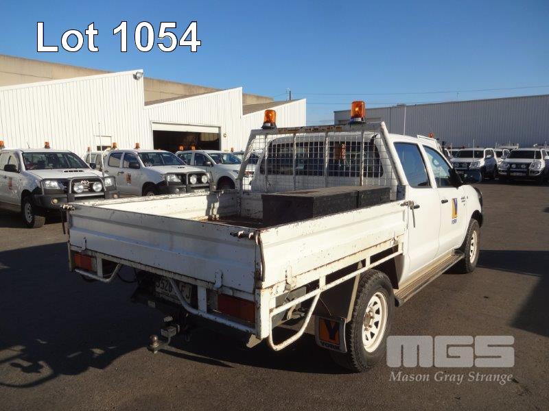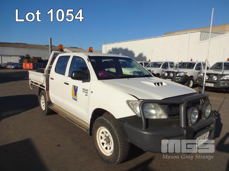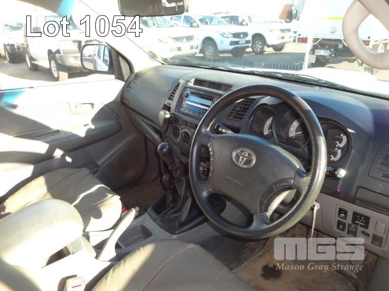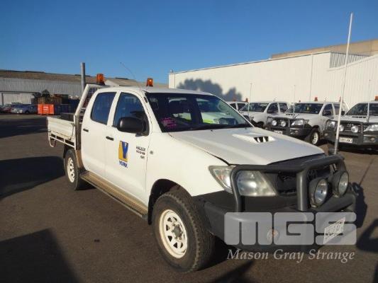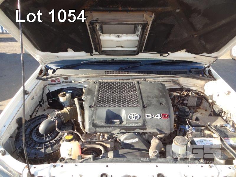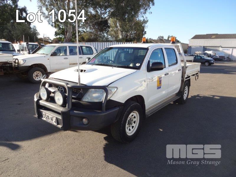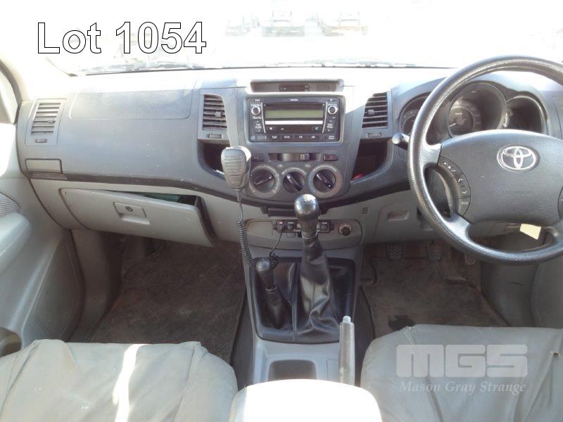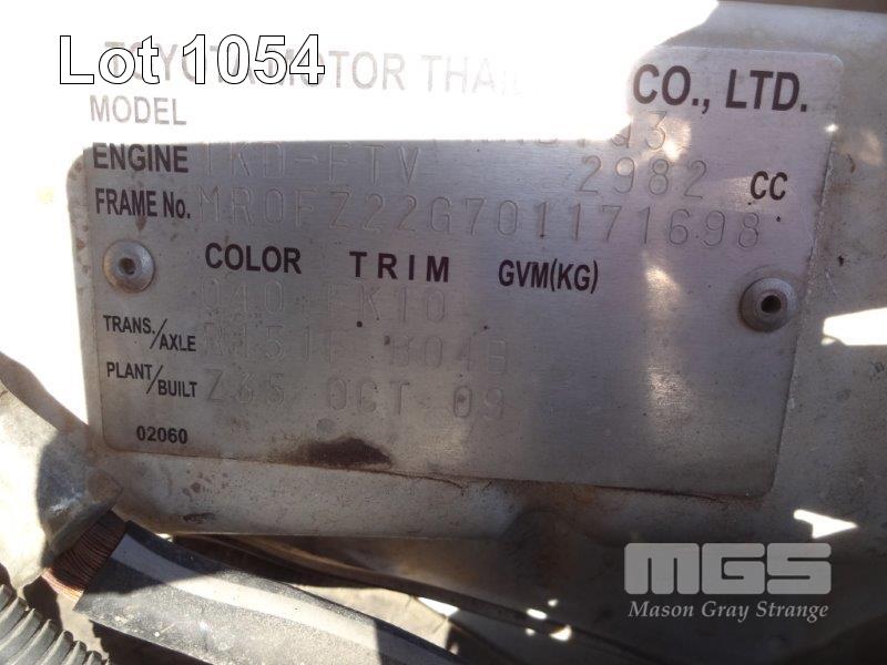2009 TOYOTA HILUX SR DUAL CAB UTILITY 4 X 4 REG: S520 AFJ (SA) (EXPIRED) VIN: MROFZ22G701171698 ENG: 1KD7871529 ODO: 187, 073 kms SHOWING PLANT NO: 37093 DIESEL, WHITE, 4 X 4 AIR CON, BULL BAR, CD PLAYER, CENTRAL LOCKING, DECALS, POWER STEERING, POWER WINDOWS, SIDE STEP, SPARE WHEEL, SPOT LIGHTS, STEEL TRAY, TOW BAR, WARNING LIGHTS, KEY #Y96 (WITH PAPERS, WITH 1 KEY/S, NO OWNER'S MANUAL, NO SERVICE BOOKS) CONDITION: GLOVE BOX - ALL FAULTS