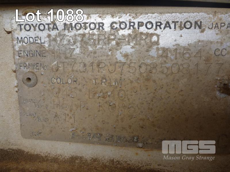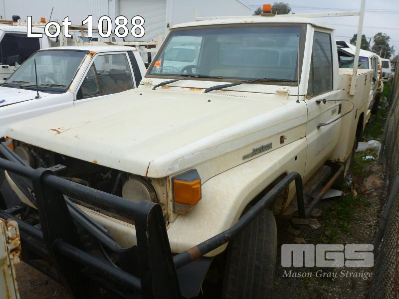 08/91 (CP) TOYOTA LAND CRUISER HZJ 75 SERVICE UTILITY VIN: JT731PJ57508508177 NO ENGINE, NO TRANS, SIDE STEP, TOW BAR, WARNING LIGHTS (NO PAPERS, NO OWNER'S MANUAL, NO SERVICE BOOKS) CONDITION: ALL FAULTS - ROLLING SHELL, RUST EVIDENT
