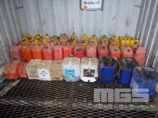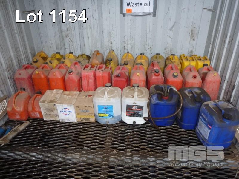25 x ASSORTED POLY & STEEL JERRY CANS & ASORTED LUBRICANTS, CONTENTS OF CONTAINER (LOCATED REGENCY ROAD, FERRYDEN PARK SA)