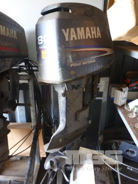 OUTBOARD MOTOR, YAMAHA 80 (CONDITION UNKNOWN) WITH STAND (LOCATED REGENCY ROAD, FERRYDEN PARK SA)