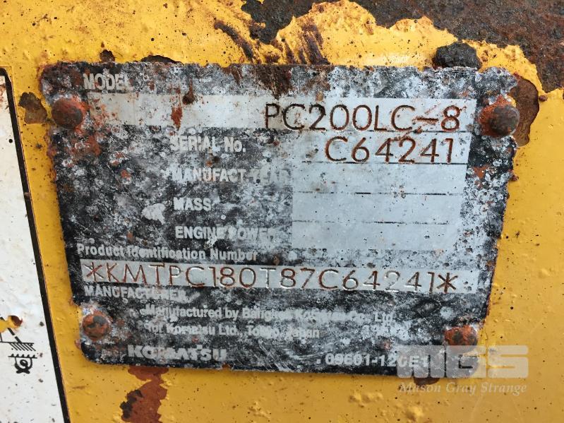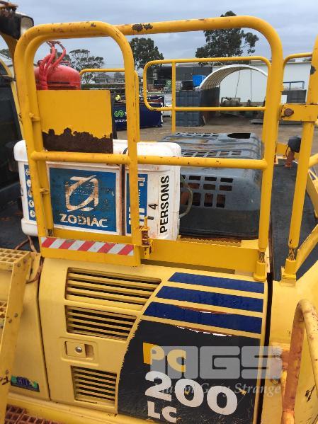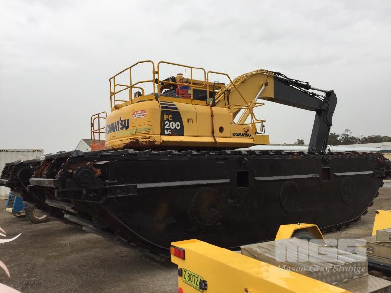 KOMATSU PC200LC-8 AMPHOIBIOUS EXCAVATOR VIN: KMTPC180T87C64241 HOURS: 3,996hours 6 CYLINDER, AUTOMATIC TRANSMISSION, DIESEL, YELLOW DUCO, A/C, CB RADIO EIK AMPHIBIOUS PONTOON TRACKS ROPS/FOPS FIRE SUPPRESSION SYSTEM (FOAM) ZODIAC SELF INFLATABLE LIFT RAFT BATTERY ISOLATION & EMERGENCY SHUTDOWN SWITCHES 114cm WIDE BUCKET SPARE TRACK BARS & FITTINGS M-NAV 800 GPS, LCD (LOCATED REGENCY ROAD, FERRYDEN PARK SA) (NO PAPERS, WITH 1 KEY/S, NO OWNER'S MANUAL, NO SERVICE BOOKS)