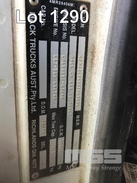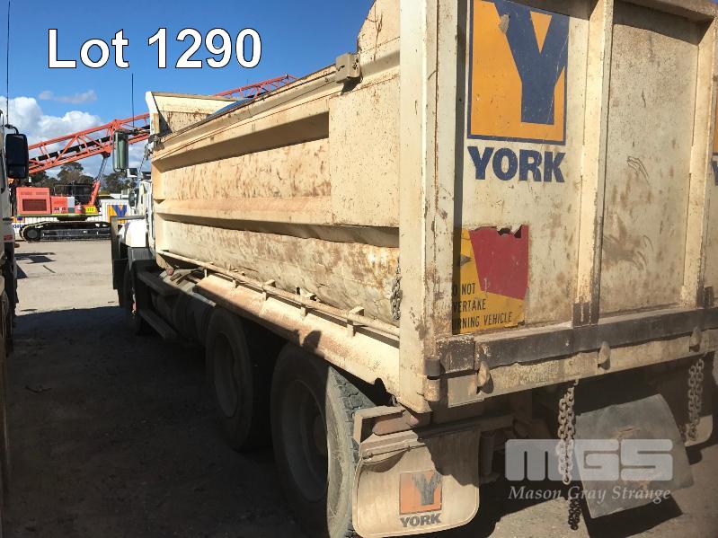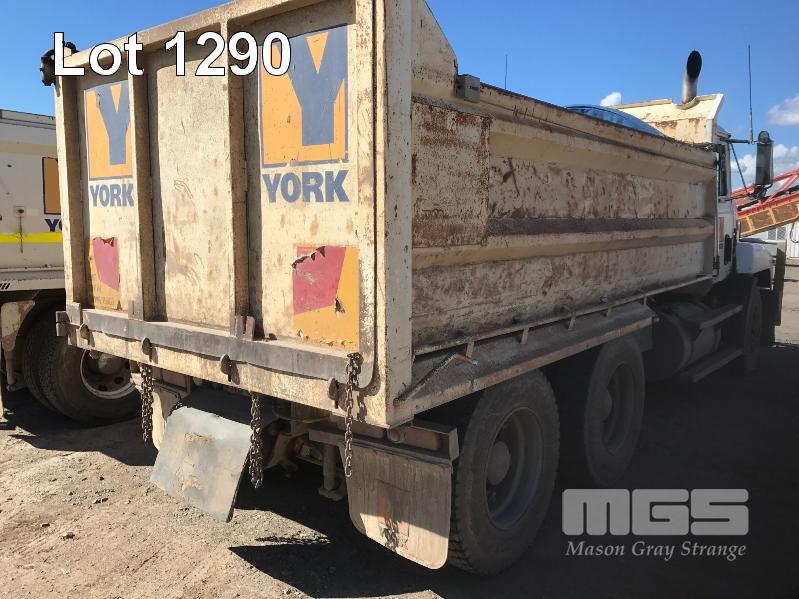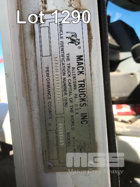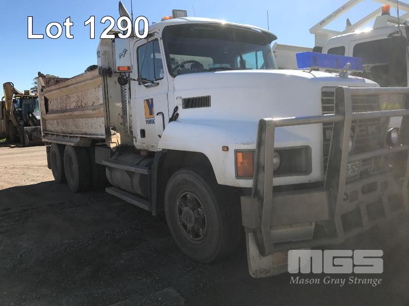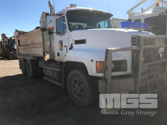 1996 MACK CH 6x4 TIPPER LONG NOSE REG: VXB 525 (SA) VIN: 6FMJ21R45ATB03846 ENG: EA7-365 6N1740 ODO: 762,122kms INDICATED PLANT NO: Y38533 HOURS: 35,830 GVM: 23,510 GCM: 45,000 MACK, EA7-365, ROCKWELL MERITOR 13 SPEED MANUAL TRANSMISSION, DIESEL, AIRBAG SUSPENSION, WHITE DUCO, 295/80R 22.5 2 DOORS, 2 SEAT, AIR CON, CB RADIO, BULL BAR, DRIVING LIGHTS, HYDRAULICS, RING FEEDER, SPIDER RIMS, STEEL RIMS, TIPPER HOIST CONTROLS, VISOR, CHASSIS NO: CH688RST-03846 4.5m STEEL TIPPER BODY WITH 2 WAY TAILGATE & RETRACTABLE TARP COVER, HAZARD LIGHTS, BATTERY ISOLATION SWITCHES, TOOL BOXES (LOCATED REGENCY ROAD, FERRYDEN PARK SA) (WITH PAPERS, WITH 1 KEY/S, WITH OWNER'S MANUAL, WITH SERVICE BOOKS)