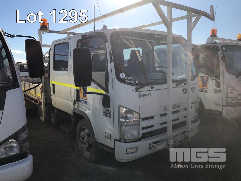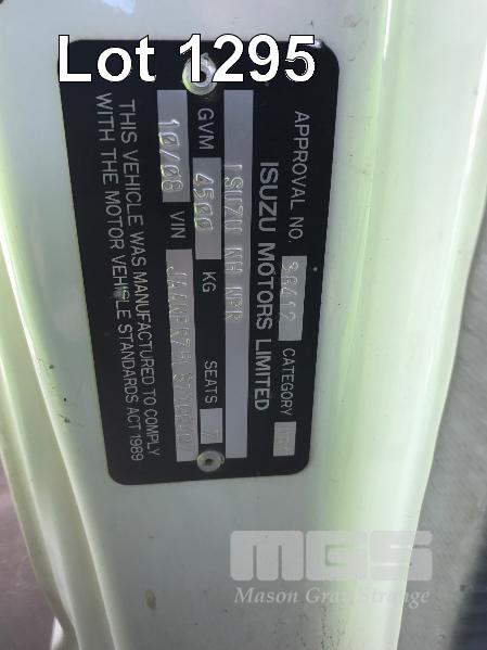 2008 ISUZU NH NPRGBB01 250 CREW EURO IV 4x2 DUAL CAB TRAY TOP REG: S265 AAM (SA) VIN: JAANPR75L87100407 ENG: 649158 ODO: 169,851kms INDICIATED PLANT NO: Y385192 GVM: 4,500 GCM: 8,000 ISUZU, SITEC 155 SERIES III, 6 SPEED MANUAL TRANSMISSION, DIESEL, SPRING SUSPENSION, WHITE DUCO, 205/75R17.5 2 DOORS, 6 SEAT, AIR CON, CD PLAYER, CB RADIO, STEEL RIMS, 4.6m STEEL CHECKER PLATE TRAY WITH HINGED SIDES, OVER CAB STORAGE RACK WITH ROTATING HAZARD LIGHTS, TOW BAR, SPARE WHEEL, BATTERY ISOLATION SWITCH KEY #57 (LOCATED REGENCY ROAD, FERRYDEN PARK SA) (WITH PAPERS, WITH 1 KEY/S, WITH OWNER'S MANUAL, WITH SERVICE BOOKS)