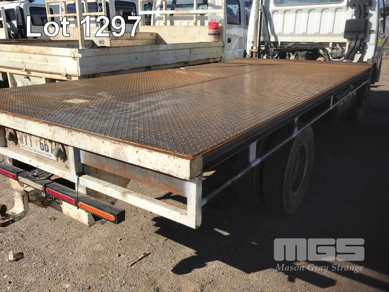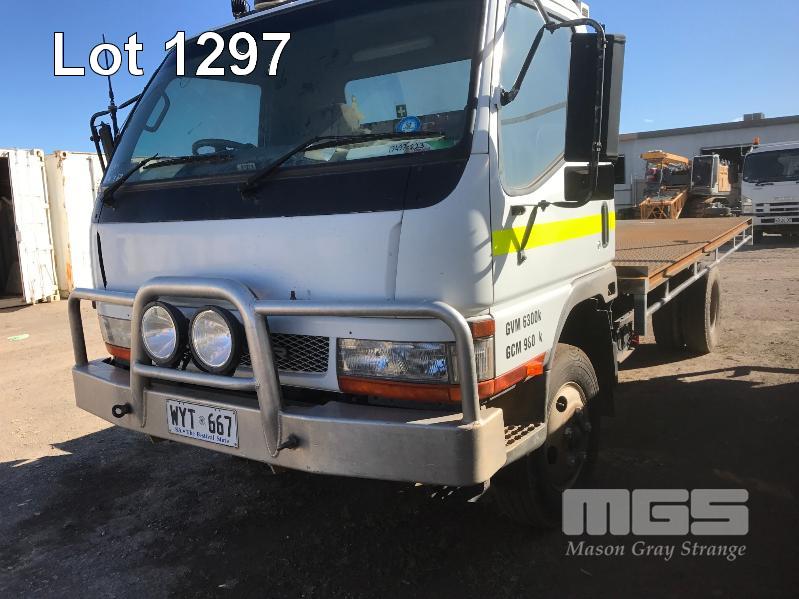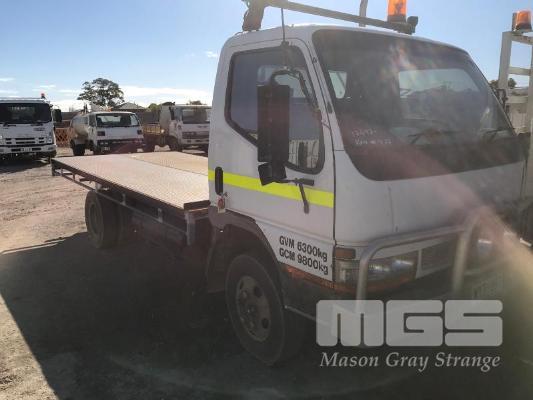 2003 MITSUBISHI CANTER 500/600 4x2 TRAY TOP REG: WYT 667 (SA) VIN: JLFFE649E0KJ40295 ODO: 328,026kms INDICATED PLANT NO: 385125 GVM: 6,300 GCM: 9,800 4 CYLINDER, 5 SPEED MANUAL TRANSMISSION, DIESEL, SPRING SUSPENSION, WHITE DUCO, 205/85R16 2 DOORS, 3 SEAT, CD PLAYER, CB RADIO, BULL BAR, DRIVING LIGHTS, STEEL RIMS, ROTATING HAZARD LIGHTS, 4.4m STEEL CHECKER PLATE TRAY, TOW BAR, BATTERY ISOLATION SWITCH KEY # Y67 (LOCATED REGENCY ROAD, FERRYDEN PARK SA) (WITH PAPERS, WITH 1 KEY/S, WITH OWNER'S MANUAL, WITH SERVICE BOOKS)