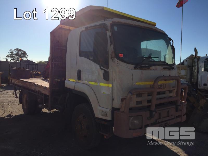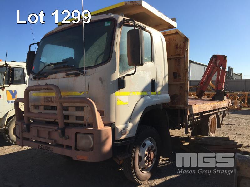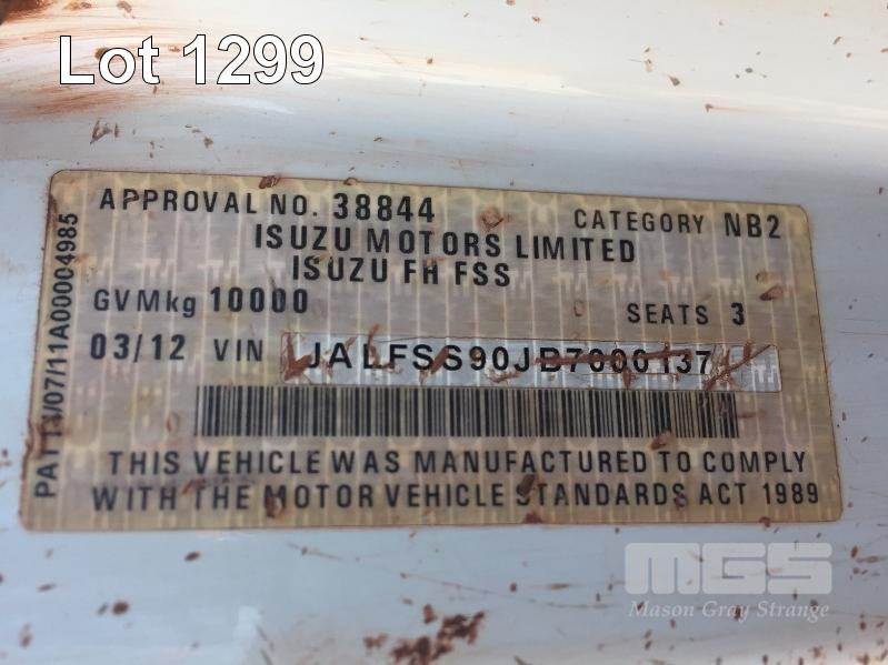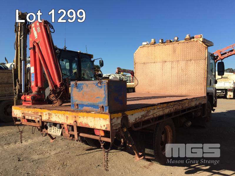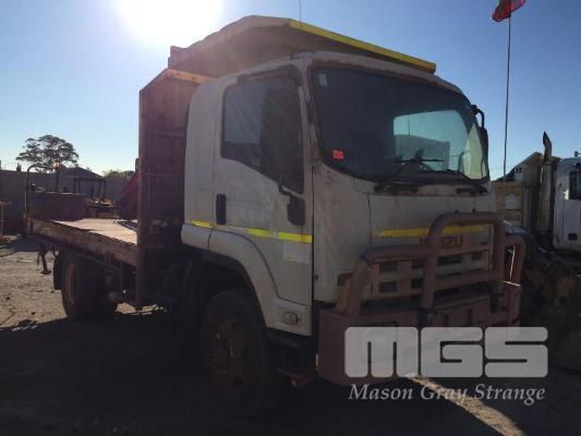 2012 ISUZU FHFSS CD B11 4x2 DUAL CAB TRAY TRUCK WITH CRANE REG: CB 53 FF VIN: JALESS10JB7000137 ODO: 91,567kms SHOWING GVM: 10,000kg GCM: 150,000kg EURO V DIESEL, 6 SPEED MANUAL TRANSMISSION, 9R 22.5 RIMS 2 DOORS, 2 SEAT, AIR CON, CD PLAYER, 4.4m STEEL TRAY, AIRBAG, ALLOY BULL BAR, ROPS-FOPS REVERSE CAMERA, FIRE SUPPRESSION, EMERGENCY STOP, ISOLATOR TOOL BOX CRANE, MAXI LIFT TYPE: 350.4H 2010 2T CAPACITY 6.8m REACH 2 x HYDRAULIC STABILIZERS INSPECTION DUE: 26/2/19 (LOCATED REGENCY ROAD, FERRYDEN PARK SA) (NO PAPERS, WITH 1 KEY/S, NO OWNER'S MANUAL, NO SERVICE BOOKS)