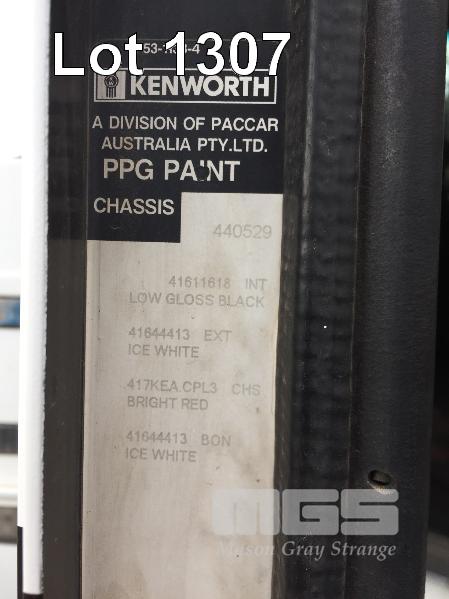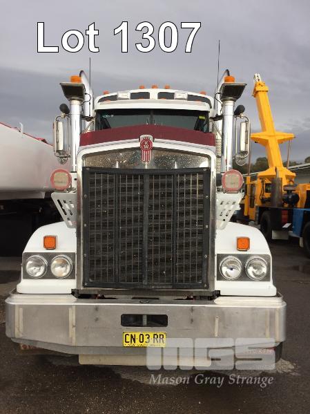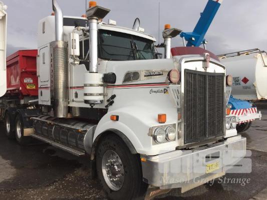 05/09 (CP) KENWORTH T908 6x4 PRIME MOVER LONG NOSE REG: CN 03 RR (NSW) VIN: 6F50000009A440529 ODO: 991,521kms SHOWING HOURS: 19,875hours GVM: 26,500kg GCM: 130,000kg HP: 475 CAT C15, EATON FULLER 18 SPEED MANUAL TRANSMISSION, DIESEL, AIRBAG SUSPENSION, WHITE DUCO, 11R22.5 2 DOORS, 2 SEAT, AIR CON, ALLOY RIMS, CD PLAYER, CB RADIO, DRIVING LIGHTS, HIGH RISE SLEEPER CAB, HYDRAULICS, ROCK SCREEN, TIPPER HOIST CONTROLS, VISOR, TOUCH SCREEN LCD SYSTEM VIESA SLEEPER AC UNIT BATTERY ISOLATION SWITCHES ROPS BAR, BATTERY ISOLATION SWITCHES 3 x FUEL TANKS & 1 x HYDRAULIC (LOCATED REGENCY ROAD, FERRYDEN PARK SA) (NO PAPERS, WITH 1 KEY/S, NO OWNER'S MANUAL, NO SERVICE BOOKS)