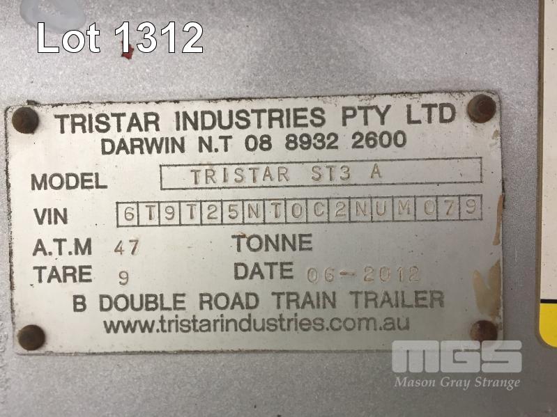 06 / 2012 TRISTAR IND TRIAXLE SIDE TIPPER SEMI TRAILER- A TRAILER MODEL: ST3 STALLION REG: X9 46 42 (NSW) VIN / CHASSIS: 6T0T2SNT0C2NUM079 ATM: 47T AIRBAG SUSPENSION, 11R22.5, TARE: 9T STEEL RIMS, B TRIPLE RATED STEEL BODY HYDRAULIC OP HINGED LID/COVER (LOCATED REGENCY ROAD, FERRYDEN PARK SA) (NO PAPERS)