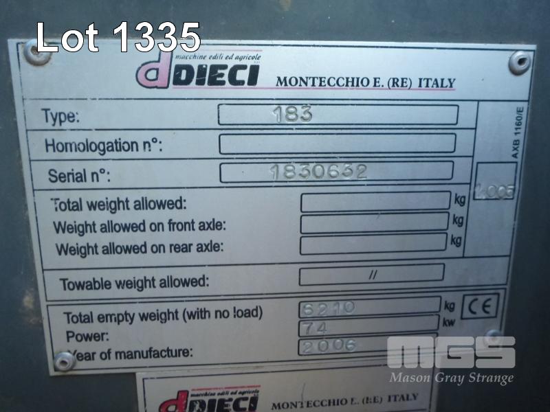 2006 D DIECI 28.7 DEDALUS 183 4x4 TELEHANDLER HOURS: 6,526hours 74kw, SWL: 2800kg S/NO: 1830632 ROPS FOPS, CABIN, AC, RADIO, FIRE SUPPRESSION, EMERGENCY STOP, ISOLATOR WITH FORKS & PERSONNEL CAGE, 25kg & SPARE WHEEL (NO PAPERS, NO OWNER'S MANUAL, NO SERVICE BOOKS)