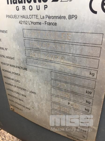 2007 HAULOTTE HA16PXNT 4x4 MOBILE BOOM LIFT HOURS: 751hours GVM: 2,740kg DEUTZ, 3 CYLINDER, DIESEL, YELLOW DUCO, 385/65-22.5 S/NO: AD116078 MAX LOAD: 230kg MAX HEIGHT: 14m HYDRAULIC DRIVE BATTERY ISOLATION & EMERGENCY SHUTDOWN SWITCHES (LOCATED REGENCY ROAD, FERRYDEN PARK SA) (NO PAPERS, WITH 1 KEY/S, NO OWNER'S MANUAL, NO SERVICE BOOKS)