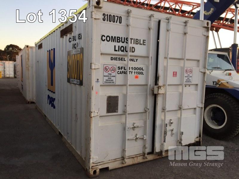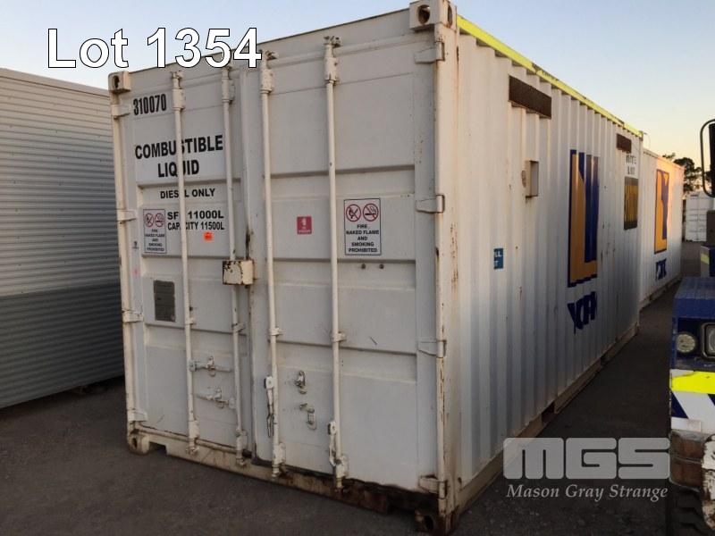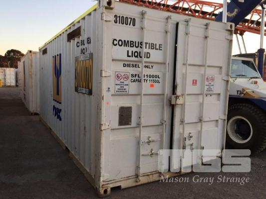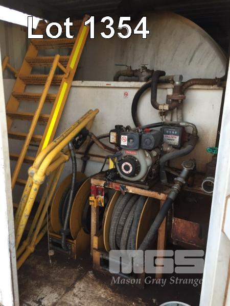 20' SHIPPING CONTAINER, BUNDED DIESEL FUEL TANK, 11,500 LITRE HIGH FLOW PUMP, YANMAR AIR COOL DIESEL FILLRITE METER 2 X HOSE REELS WITH TRIGGER NOZZLES INSPECTIONS STEPS, HAND RAILS, ISOLATORS, EXTINGUISHERS PLANT NO: 310070 (LOCATED REGENCY ROAD, FERRYDEN PARK SA)