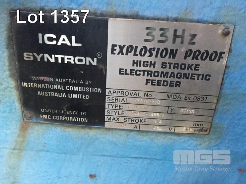 VIBRATING FEEDER, ICAL SYNTRON TYPE: FVD650 ELECTROMAGNETIC DRIVE 33HZ, 415V, EXPLOSION PROOF, HIGH STROKE (LOCATED REGENCY ROAD, FERRYDEN PARK SA)