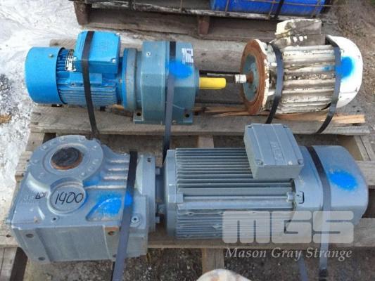 3 x ELECTRIC MOTORS, 1 WITH RIGHT ANGLE DRIVE, 1 x PALLET (LOCATED REGENCY ROAD, FERRYDEN PARK SA)