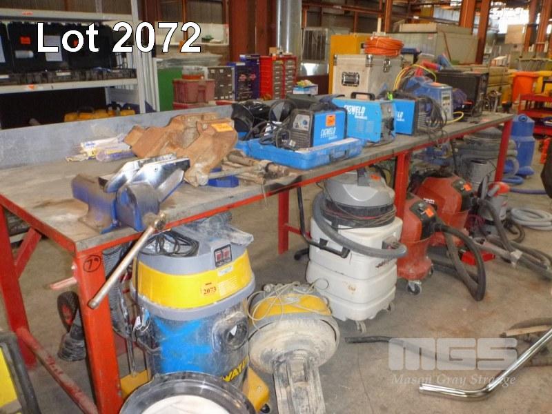 STEEL WORK BENCH, 390 x 100cm WITH 6" OFFSET VICE