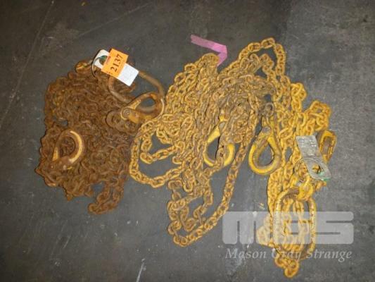 2 x SETS TWIN LEG LIFTING CHAINS, 2.6 TONNE, LONG DROP, WITH SHORTENERS