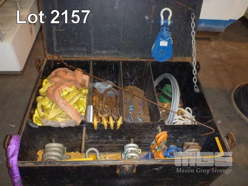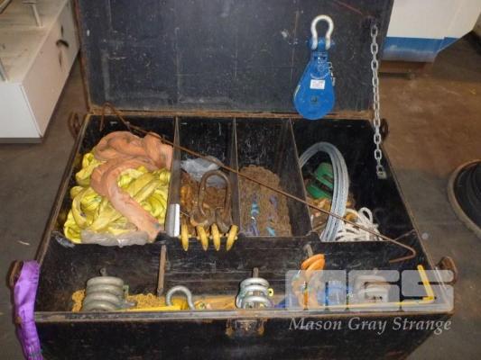CRANE RISERS, LOCK BOX, 12.5 TONNE SWIFT LIFTS, 4 x 10 TONNE SWIFT LIFTS, 8 x BOX SHACKLES, 10 TONNE & 2 x LEVER ACTION COME ALONGS, SNATCH BLOCK, 8 TONNE WITH 5 PLUS TWIN LEG CHAIN SETS, 2-10 TONNE, SHORTENERS VARIOUS SOFT SLINGS, 1-10 TONNE, 2 TONNE CHAIN BLOCK