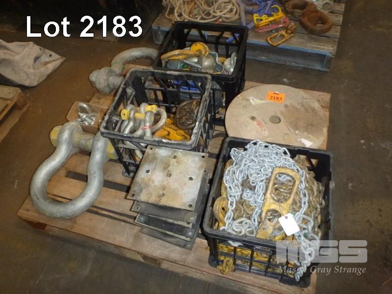 PALLET CHAINS, SWIFT LIFTS, SHACKLES, SINGLE LEG LIFT CHAIN & PAIR 55 TONNE BOX SHACKLES & WIRE ROPE