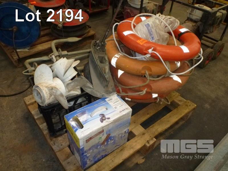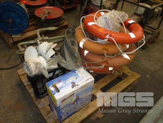 PALLET LOT ASSORTED OUTBOARD PROPS & LIFE BUOYS