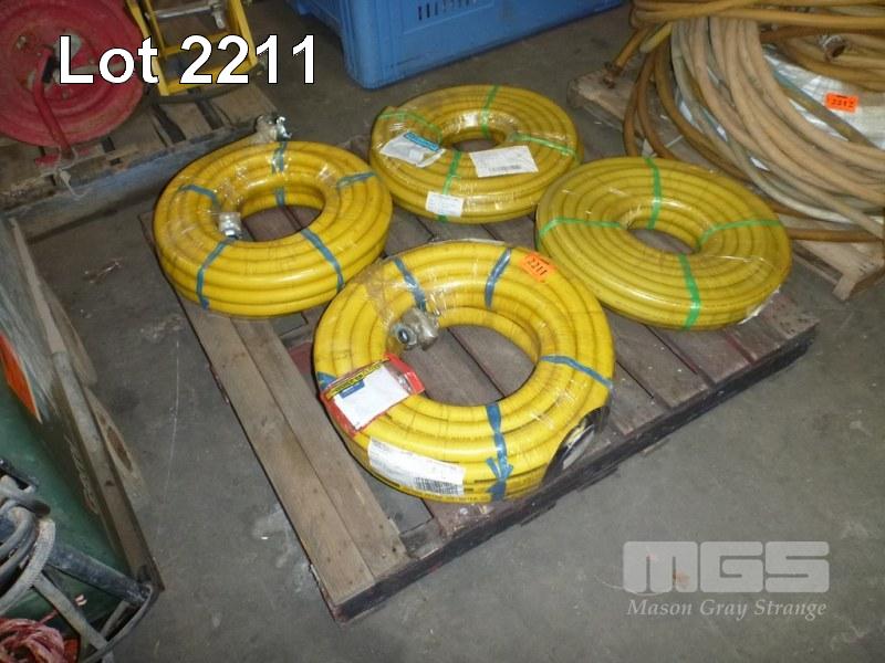 4 x ROLLS 14 BAR YELLOW AIR HOSE, 2 x WITH FITTINGS, 20m, 3/4'