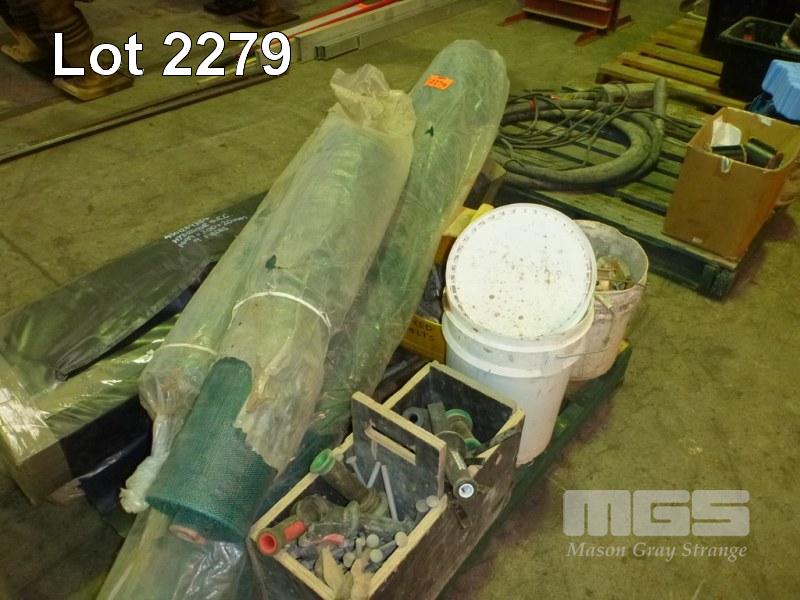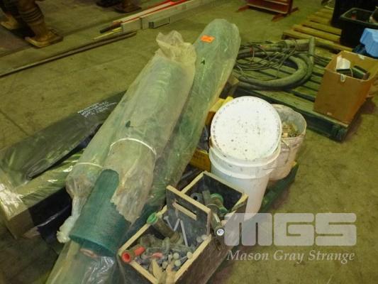 2 x PALLETS BUILDING MATERIALS, WACKER ELECTRIC PROBE (ALL FAULTS), SHADE CLOTH