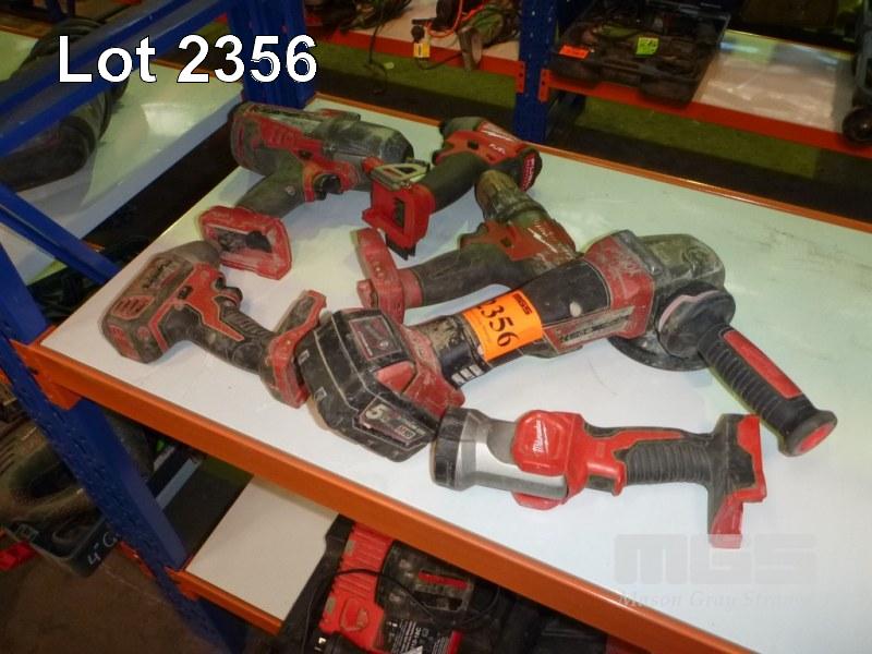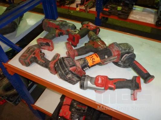 CORDLESS ANGLE GRINDER, DRILL, IMPACT WRENCH & DRIVER, MILWAUKEE (1 x BATTERY, NO CHARGER)