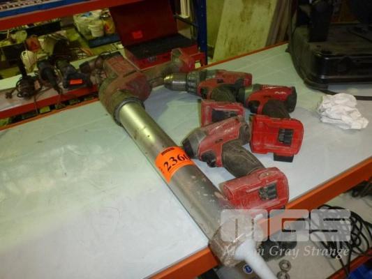 4 x ASSORTED CORDLESS TOOLS, MILWAUKEE (NO BATTERY OR CHARGER)