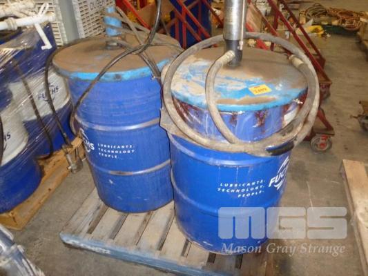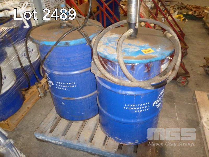 2 x 205 LITRE GREASE DRUMS & PUMPS, ASSORTED