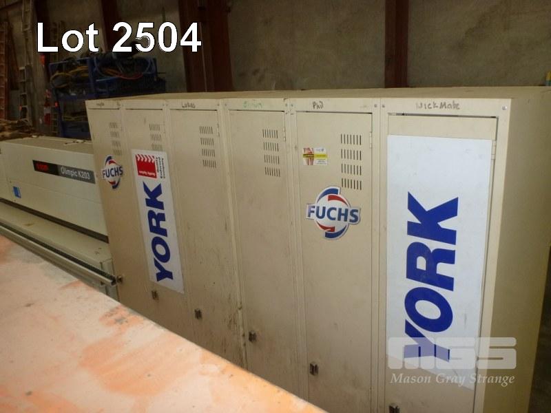 4 x LOCKER UNITS, 2 x 3 DOOR, ORANGE & BEIGE
