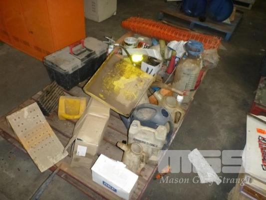 ORANGE BARRIER MESH, WATER CANS, PLASTIC TRAY, TIE DOWN FERNO STRETCHER, FOLD AWAY, 2 x PALLETS