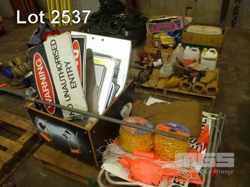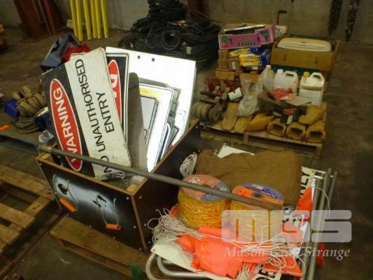 WARNING SIGNS, A-FRAMES, PLASTIC CHAIN, HYDRAULIC JACKS & SAFETY STAND