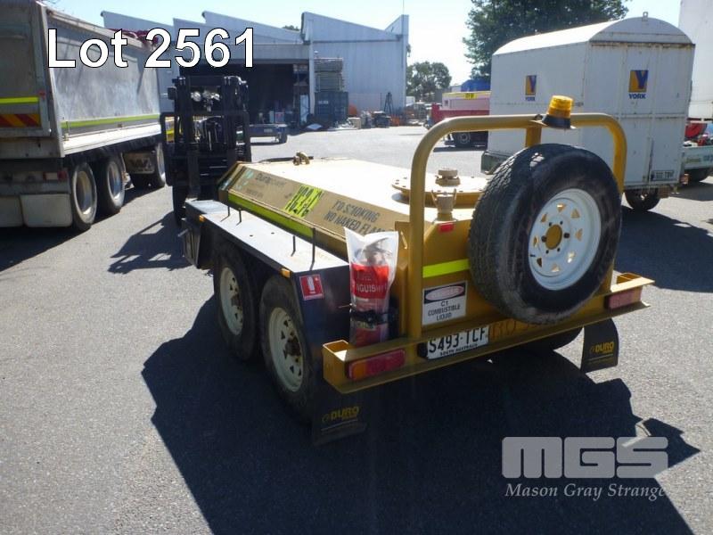 2012 DURO TANK 3.5m TANDEM AXLE FUEL TANKER TRAILER MODEL: DT-012 REG: S493 TCF (SA) VIN / CHASSIS: 6T9T27R04C0A79001 PLANT NO: 385270 S/NO: 28010412 BALL HITCH, 1200 LITRE CAPACITY, DIESEL POWERED TRANSFER PUMP, FLOW METER (WITH PAPERS)