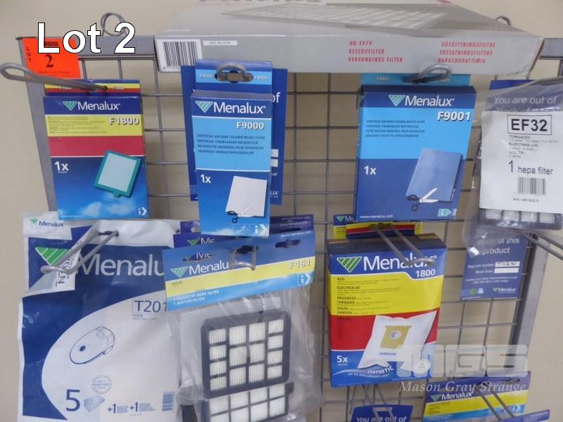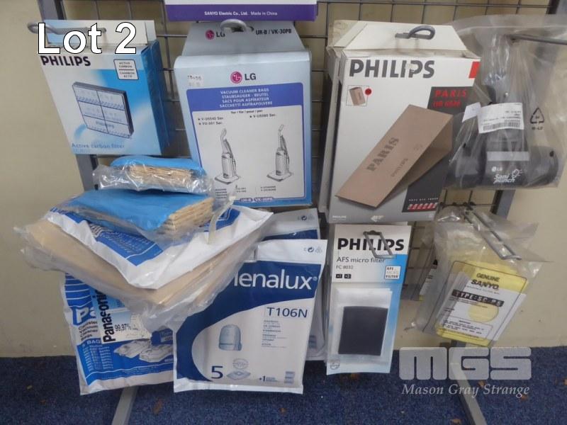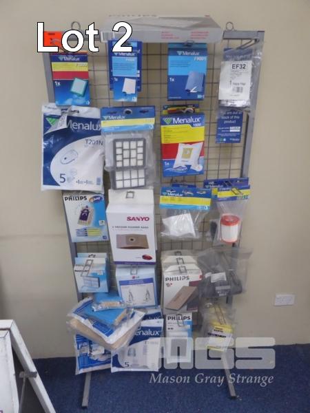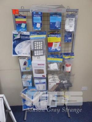RACK & CONTENTS, VACUUM CLEANER BAGS & FITTER