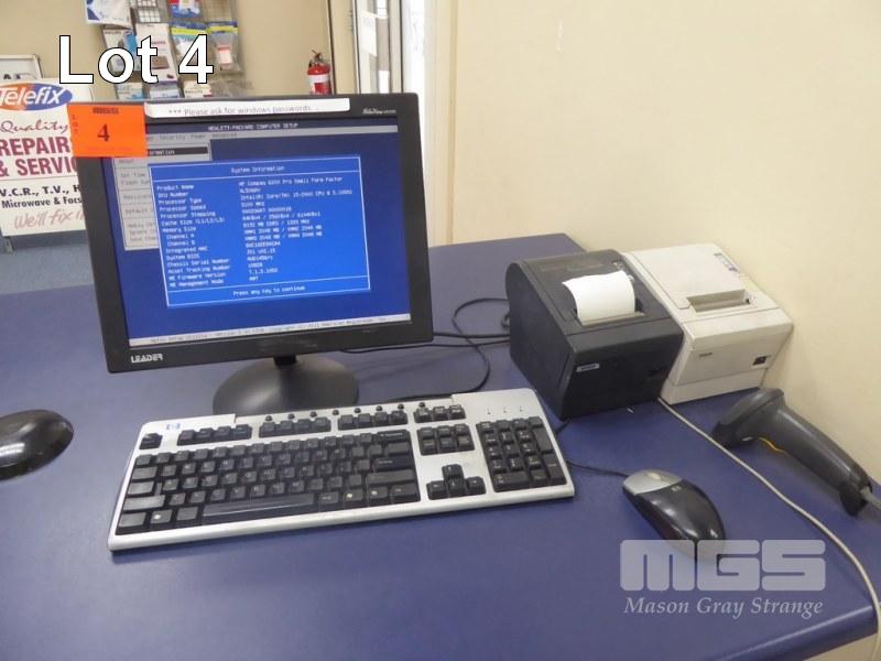 POS SYSTEM:- HP COMPAQ 6200 SFF, CORE i5 2400 @ 3.1GHZ, 8GB RAM, 250GB HDD, 15" LCD MONITOR, KEYBOARD & MOUSE, SYMBOL BARCODE SCANNER & 2 x EPSON DOCKET PRINTERS