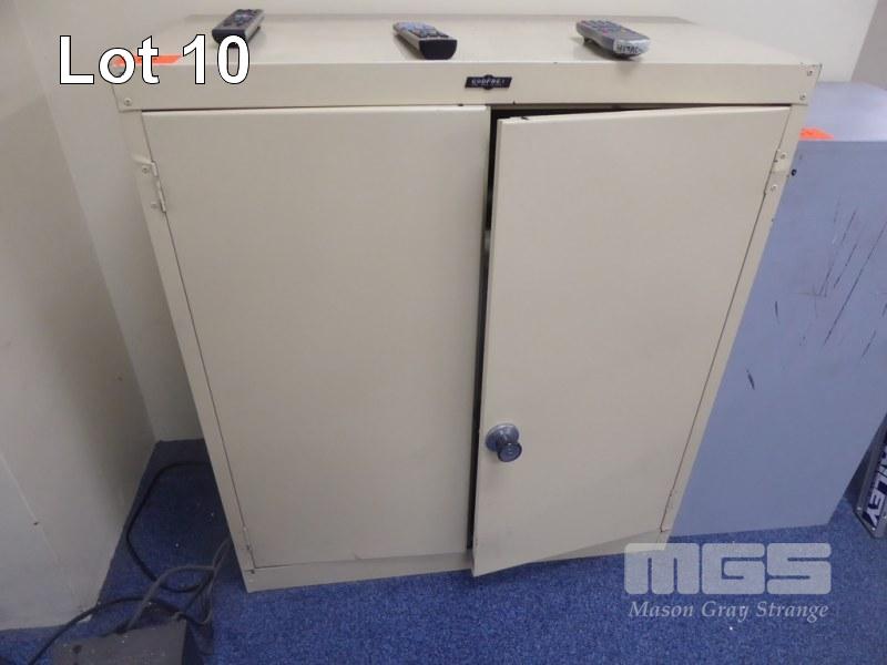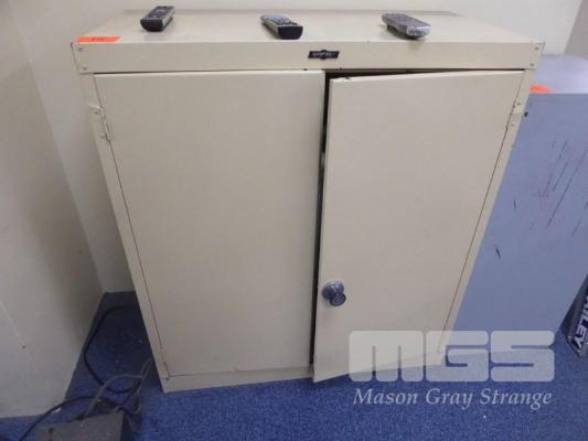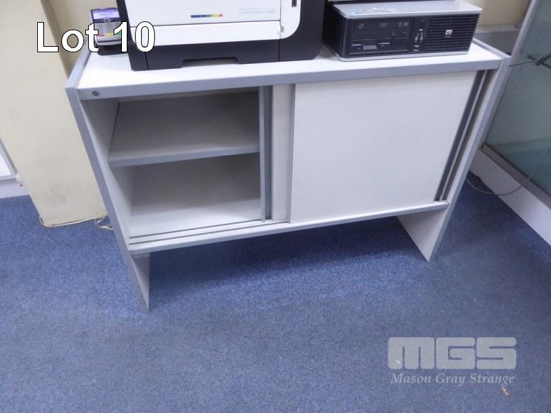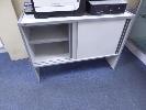 LOWLINE CABINET, GODFREY CREAM STEEL, 2 DOOR, WITH GREY LAMINATE CREDENZA