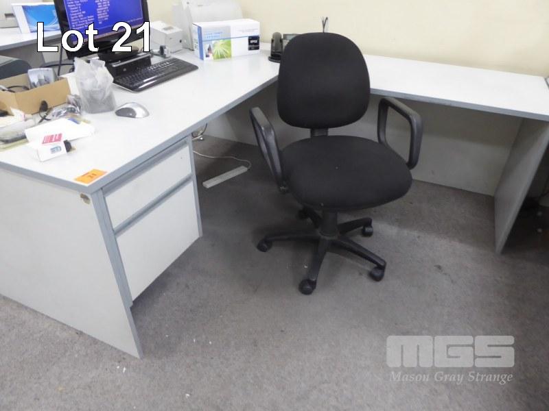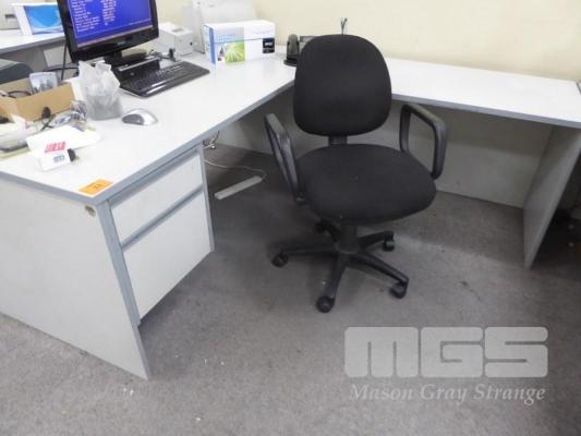 OFFICE DESK, GREY LAMINATE, 180 x 80cm, RIGHT HAND RETURN, 2 DRAWER & OFFICE CHAIR