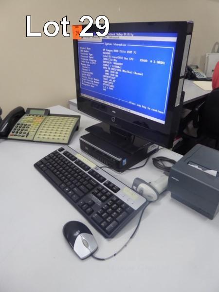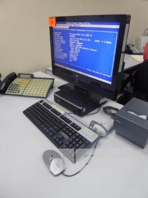 POS SYSTEM:- DESKTOP COMPUTER, HP 8000 ELITE USDT, CORE 2 DUO E8400 @ 3GHZ, 4GB RAM, 160GB HDD AWA 22" LCD/TV MONITOR, KEYBOARD & MOUSE, POSIFLEX DOCKET PRINTER, BARCODE SCANNER