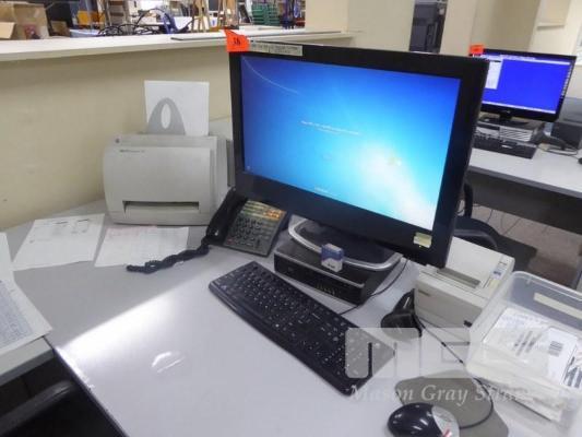 POS SYSTEM:- DESKTOP COMPUTER, HP 8000 ELITE USDT, CORE 2 DUO E8400 @ 3GHZ, 4GB RAM, 160GB HDD KEYBOARD & MOUSE, VOXSON 22" LCD/TV MONITOR, EPSON DOCKET PRINTER, BARCODE SCANNER WITH HP LASERJET 1100 LASER PRINTER