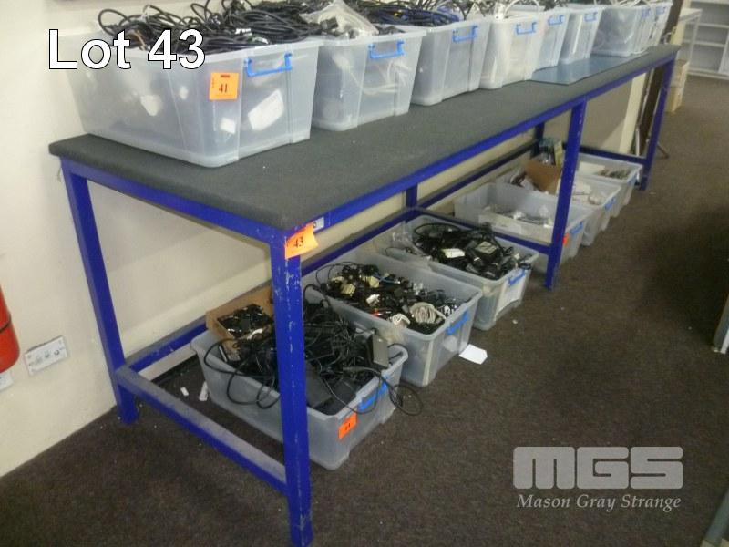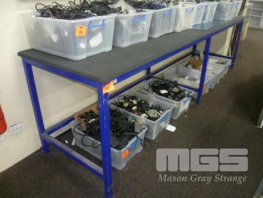 WORKBENCH, STEEL FRAME, PARTICLE BOARD TOP, WITH CARPET, 320 x 78cm