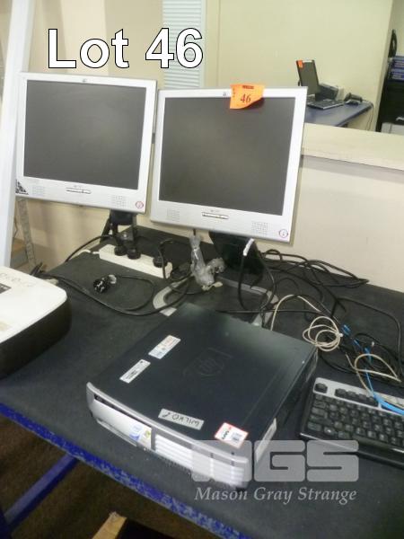 DESKTOP COMPUTER, HP COMPAQ DC7700 USDT, CORE 2 DUO 4300 @ 1.8GHz, 3GB RAM, 90GB SSD 2 x 15" LCD MONITORS, KEYBOARD & MOUSE HP COLOR LASERJET 2600N PRINTER, HP LASERJET P2015DN PRINTER & EPSON STYLUS PHOTO R230 PRINTER